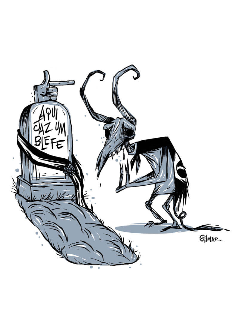 Camiseta de algodão – Aqui jaz um blefe – Cartunista das Cavernas