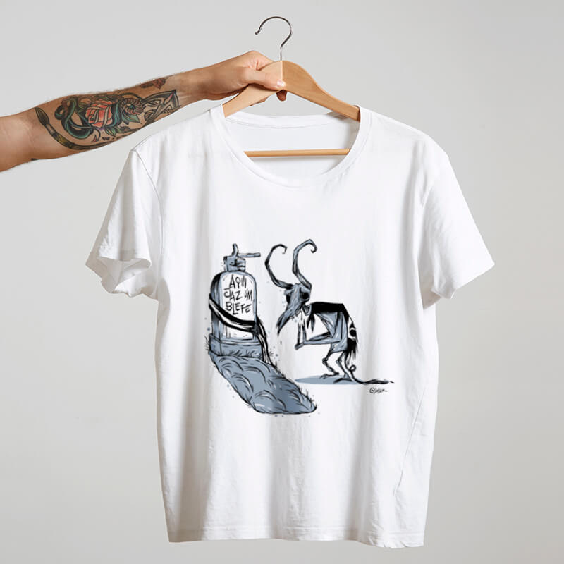 Autor de 12 livros de tiras e quadrinhos, três adotados para distribuição em bibliotecas públicas. Em 2021 recebeu o Grand Prix Internacional no Festival de Saint Just le Martel, o maior evento de desenho de imprensa do mundo. Suas charges políticas e sociais documentam o Brasil contemporâneo com humor ácido e senso de justiça. O nome Cartunista das Cavernas vem do fato de trabalhar em casa, no próprio estúdio, longe das redações. Essa camiseta carrega a referência em algodão macio pra quem não se contenta com neutralidade. Camiseta de algodão com estampa nítida e tecido macio. Disponível em diversos tamanhos.